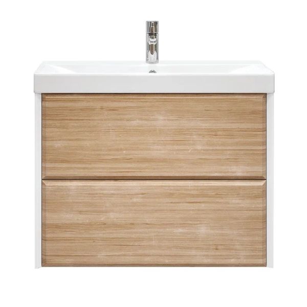 Тумба под раковину подвесная Velvex Gesso tp.GES.9696.80.2Y белый матовый/дуб сонома, 80 см: 2 выдвижных ящика с механизмом открывания push-to-open.