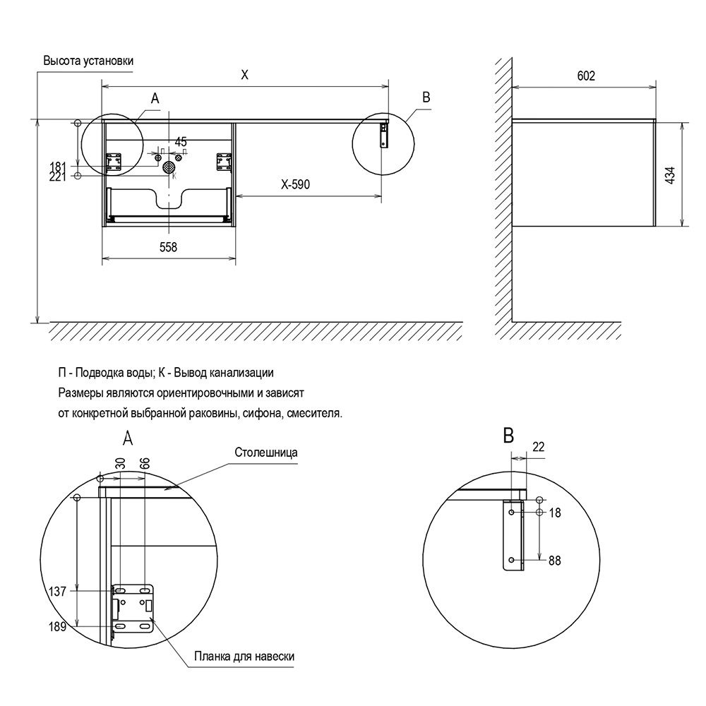 Тумба под раковину подвесная Velvex Klaufs tp.KLA.56.1Y, 55 см