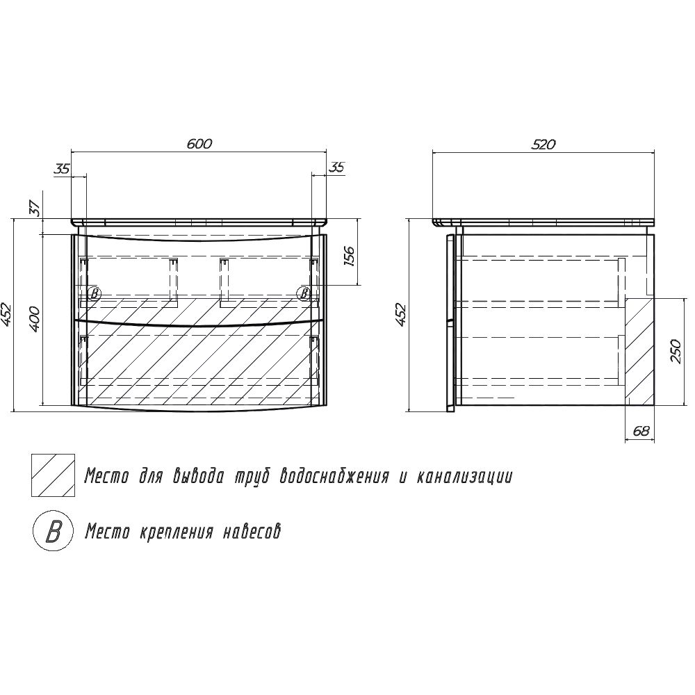 Тумба под раковину подвесная Velvex Luna tp.LUN.60.2Y, 60 см купить
