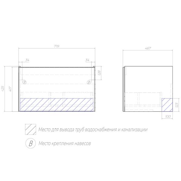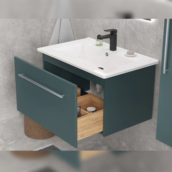 Тумба под раковину подвесная Velvex Posse tp.POS.OSK.75.1Y верде/дуб золотой, 75 см: 1 выдвижной ящик с механизмом плавного закрывания.
