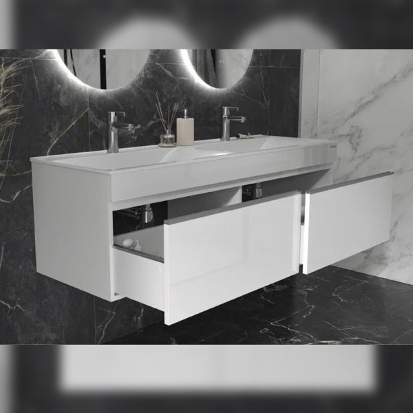 Тумба под раковину подвесная Velvex Pulsus tp.PUL.PUL.140.2Y белый глянец, 140 см: 2 выдвижных ящика.