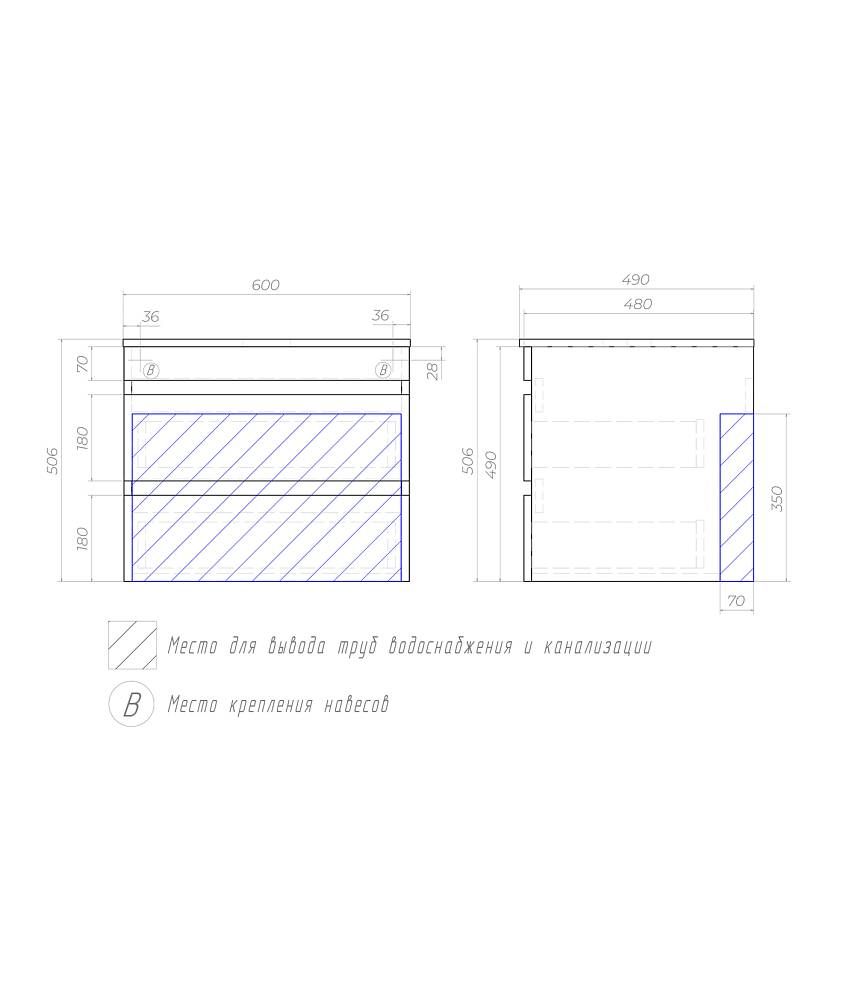 Тумба под раковину подвесная Vigo Urban tp.URB.60.2Y 60 см белый
