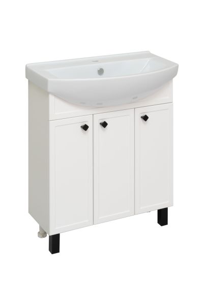 Тумба с раковиной RUNO РИМИНИ - выполнена в стиле Прованс. Тепло и уют домашнего очага, очарование старины и элегантность, а также продуманный функционал помогут украсить интерьер любой ванной комнаты. Тумба под раковину РИМИНИ (напольная) имеет три распашные дверцы. Оснащена - двумя внутренними полками. В комплекте входят - петли со встроенным доводчиком, 3 ручки, 4 ножки. Тумба комплектуется керамической раковиной "Best 75" (745*430 мм), глубиной 20,2 см. Мебель для ванной RUNO - красота и практичность в мелочах!