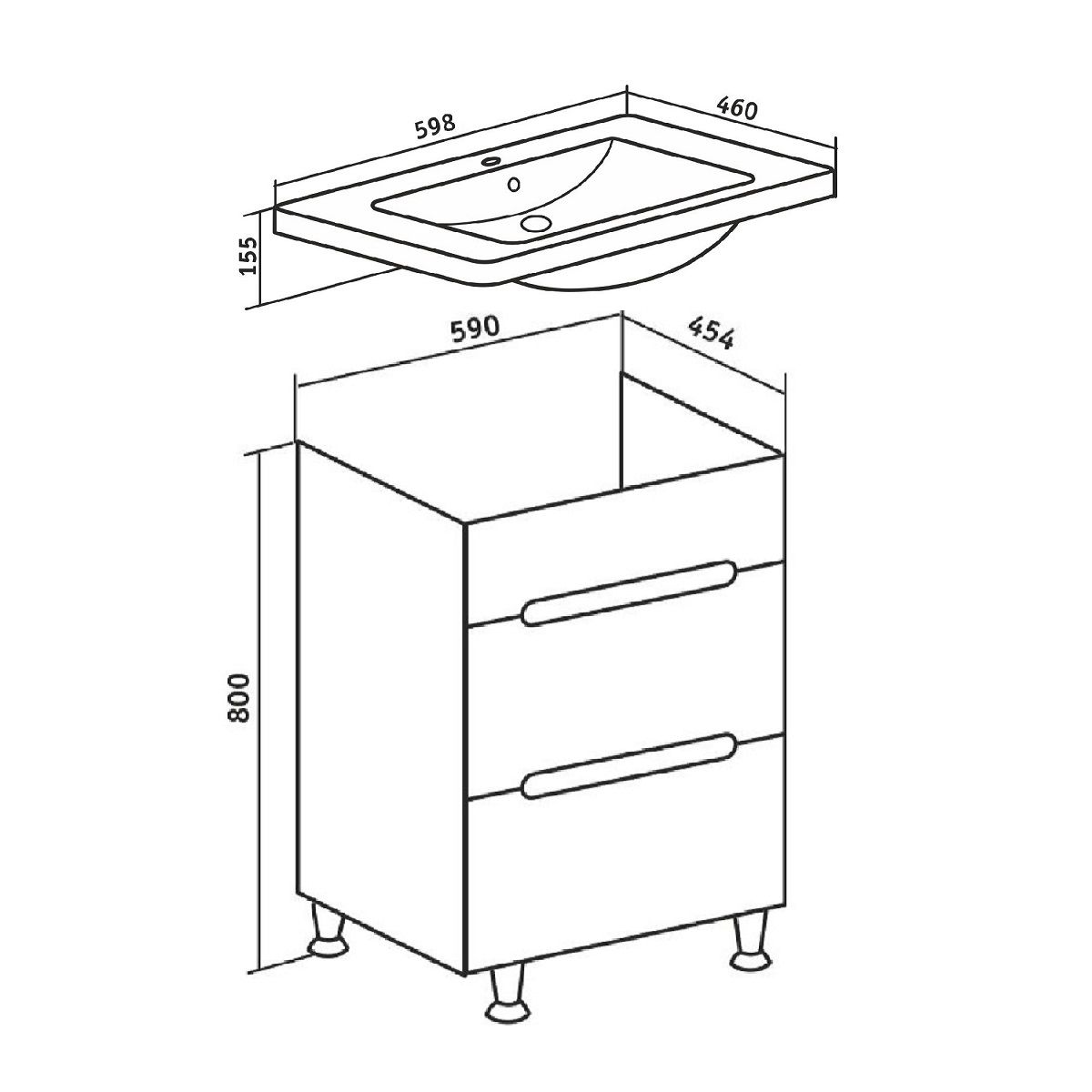 Тумба под раковину Runo напольная 2 ящика (под умывальник Omega 60) Парма 60 (00000001139)