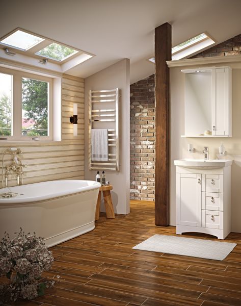 Коллекция мебели «Мерида» выполнена в классическом стиле. Четкие, лаконичные формы и продуманный функционал помогут украсить интерьер любой ванной комнаты. Тумба напольная с одним распашным фасадом и тремя выдвижными ящиками. За левой дверкой - одна внутренняя полка. Ящики - на шариковых направляющих полного выдвижения, петли со встроенным доводчиком, ручки - 4шт, ножки пластик - 4шт (скрыты за нижней фальш-панелью)