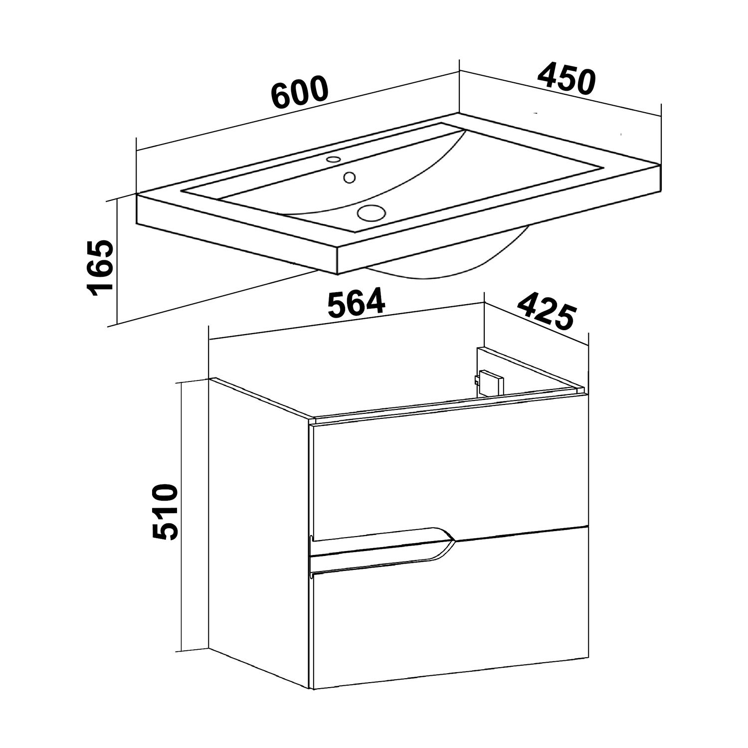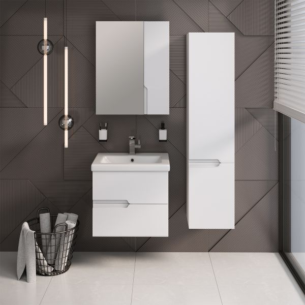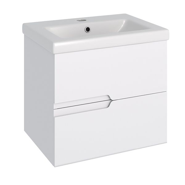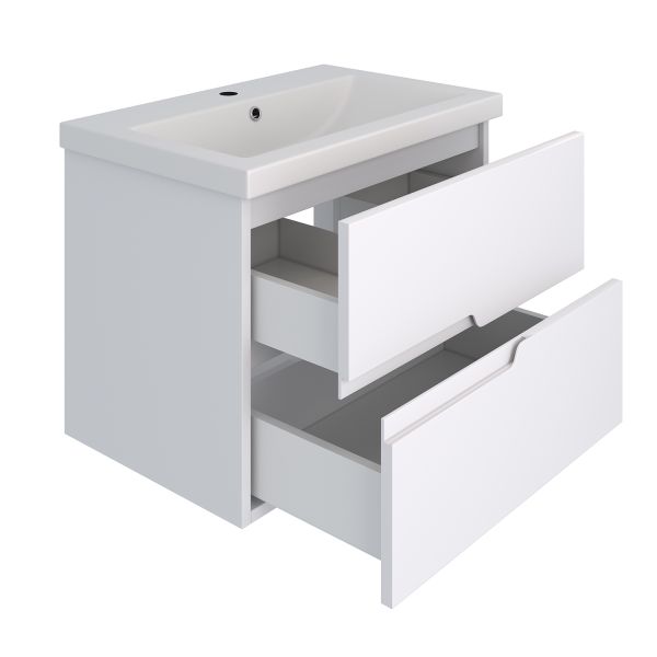 Подвесная тумба функционально состоит из двух ящиков на шариковых направляющих скрытого монтажа с доводчиком. Модель комплектуется умывальником "Como" 60см ТМ Cersanit.