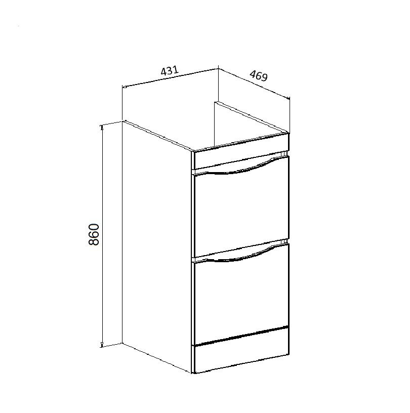 Тумба под умывальник напольная с двумя выдвижными ящиками на шариковых направляющих скрытого мон... Подробнее