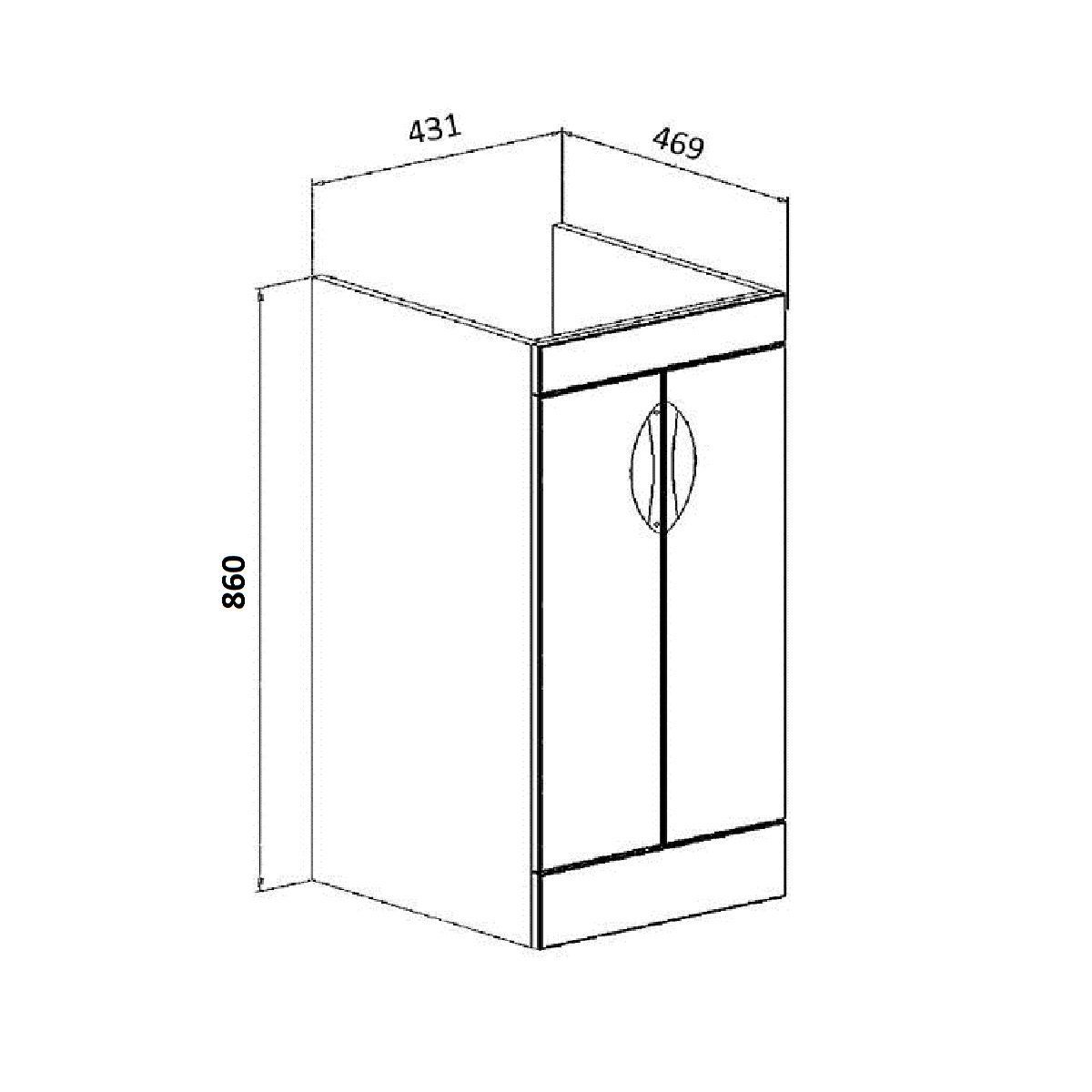 Тумба "Лира" 45 см напольная с двумя распашными дверками и одной встроенной полкой. Устанавливается на 4-е пластиковые опоры, скрытые за нижней съемной фальшь-панелью. Комплектуется умывальником из литьевого мрамора "Gamma 105 лайт" Умывальник устанавливается на тумбу и кронштейн. Модель предусматривает установку стиральной машины под крылом умывальника