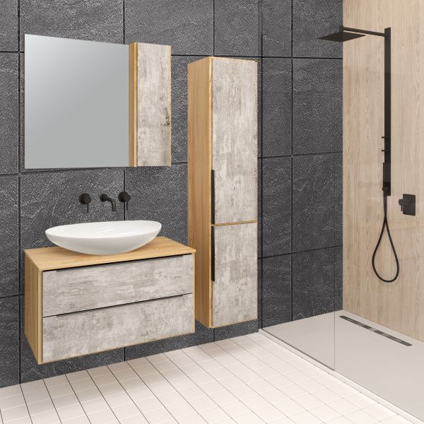 Тумба под раковину Runo подвесная серый дуб (под умывальник Moduo Square 50/ Гамма 56/ Infinity 85/ Moduo Leaf 55) Мальта 85 (00-00001100)