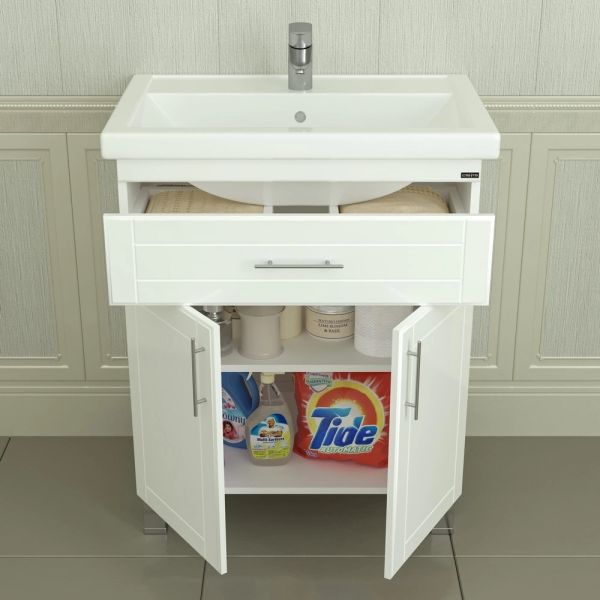 Тумба для комплекта СанТа подойдет как для просторной ванной комнаты, так и для небольшого помещения. Напольный способ установки производится непосредственно на пол, при этом конструкция максимально устойчива при серьезных физических нагрузках.В производстве используют только качественные влагостойкие материалы (ВЛДСП), в составе которых полностью отсутствуют опасные вещества. Серия Венера отличается превосходным дизайном с соблюдением всех ключевых элементов современного стиля. Основным цветом, в котором выполнена тумба под раковину СанТа является белый, гармонирующий с большинством интерьерных решений. Тумба под раковину предусматривает удобную и вместительную систему хранения, состоящую из полок и дверей.Страной бренда СанТа является Россия, все товары производятся с выполнением соответствующих стандартов качества, что позволяет быть полностью уверенными в долговечности и надежности. Тумба для комплекта СанТа поможет сделать уютным любой интерьер и создать идеальную ванную комнату.