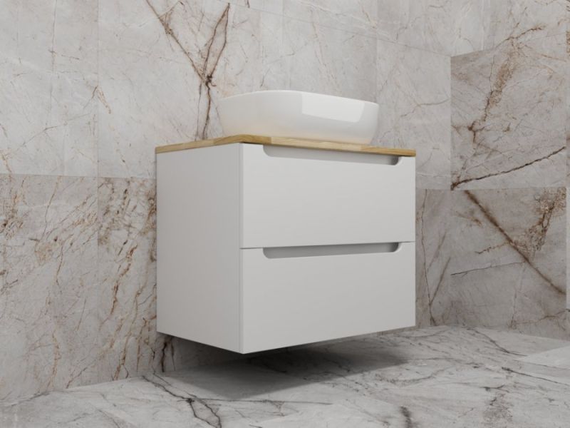 Столешница из натурального ясеня толщиной 20 мм покрыта матовым влагостойким лаком. Фасады и корпус в матовой пленке SOFT TUOCH. Внутренне наполнение из ЛДСП в декоре ГРАФИТ с эргономичным ограничителем под сифон. Фасады без ручек с лаконичным вырезом для комфортного открывания. Выдвижные ящики с системой плавного закрывания SOFT CLOSE. Экологичные и влагостойкие материалы. Легкость в уходе, практичность и стильный внешний вид.