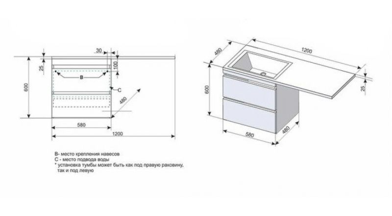 Тумба под раковину Style Line Даллас 120 СС-00000469 под стиральную машинку