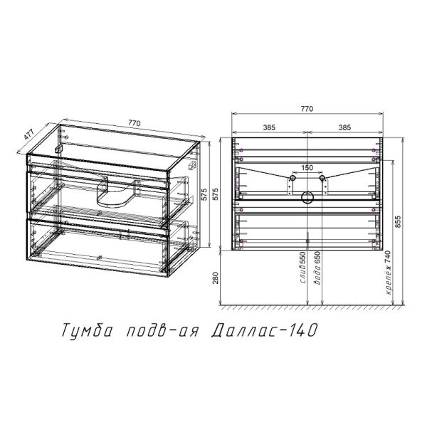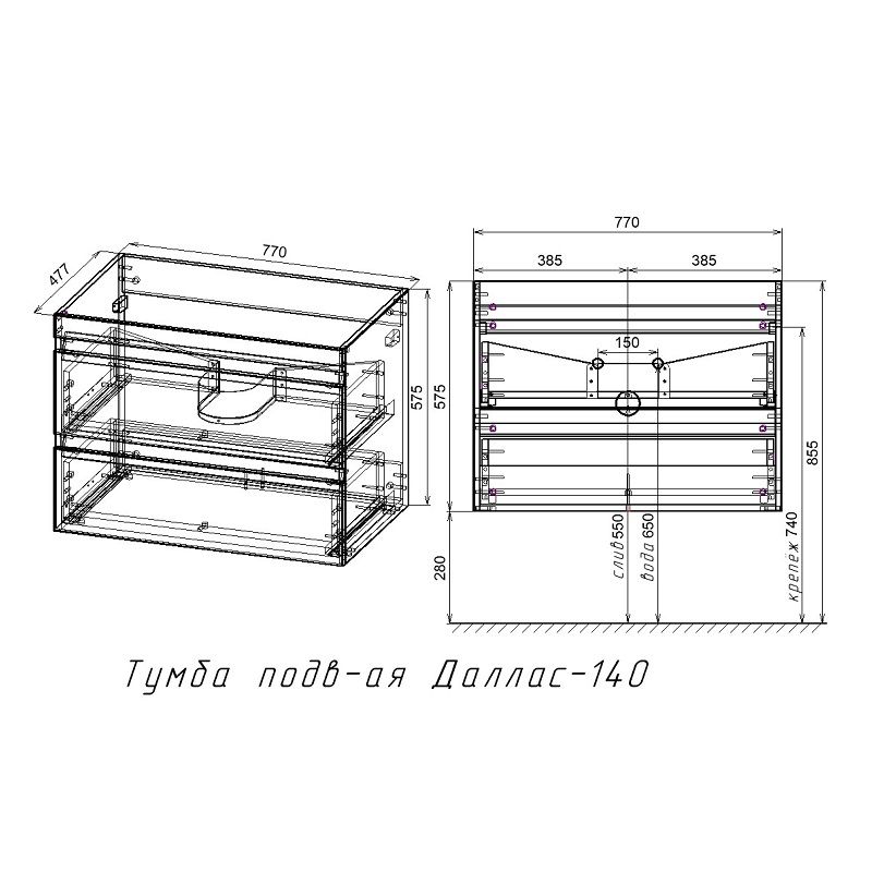 Тумба под раковину Style Line Даллас СС-00002337 140 Люкс Plus 140 см