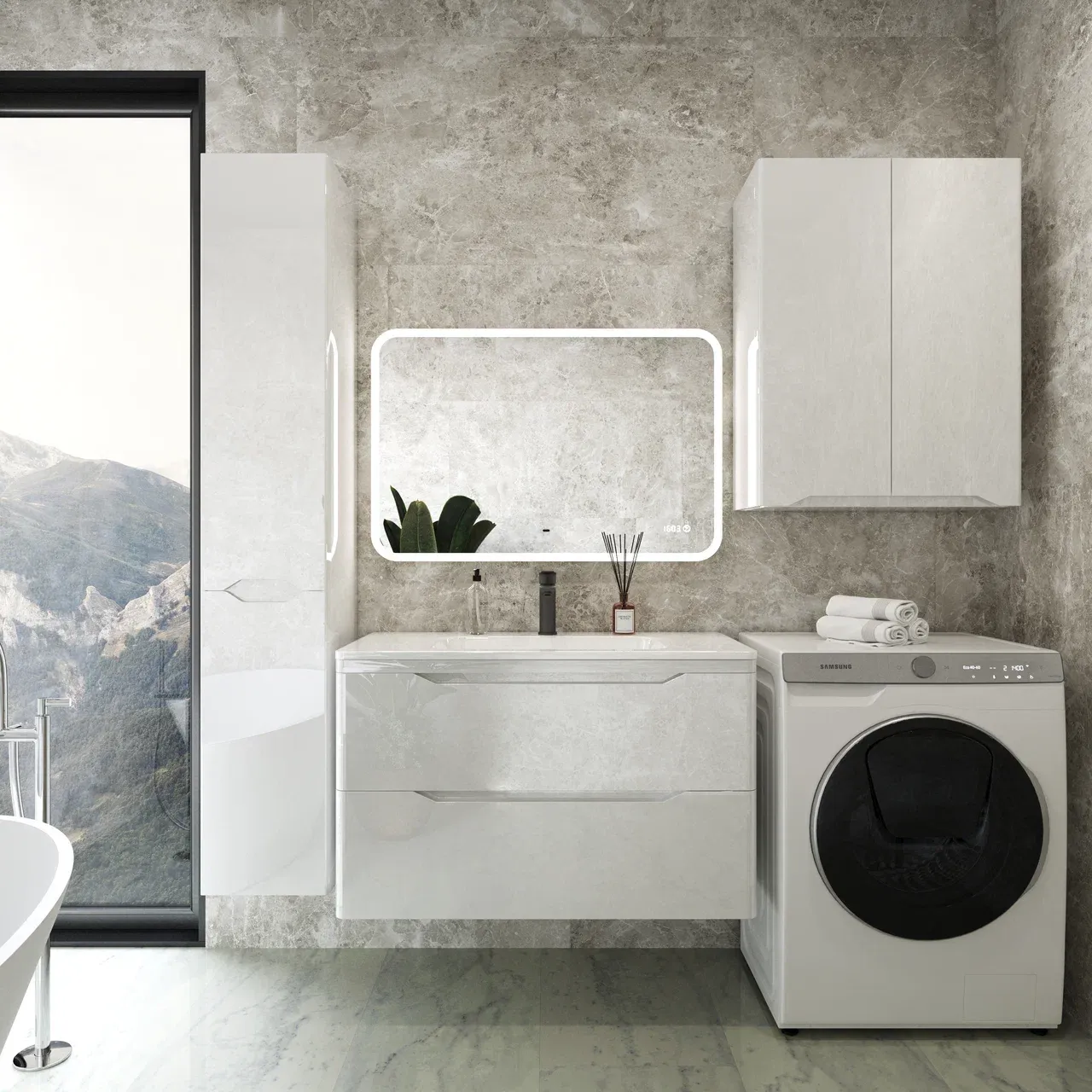 Тумба под раковину Style Line Марелла 90 Люкс Plus СС-00002414 белый глянец