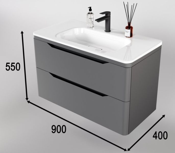 Тумба под раковину Style Line Марелла 90 Люкс Plus СС-00002415 серый матовый