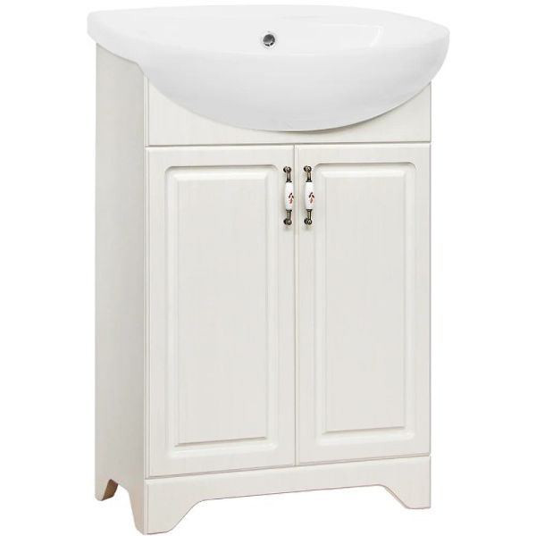 Тумба под раковину Style Line Олеандр-2 55 Люкс ЛС-00000198, рельеф пастельТумба напольная классического дизайна, декорированная ручками с керамическими вставками "под бронзу" с изящным рисунком. Направляющие полного выдвижения Hettich; сборка изделия с помощью эксцентриковых стяжек Hafele; все материалы полностью влагостойкие. Данная тумба предусматривает открытую подводку воды.