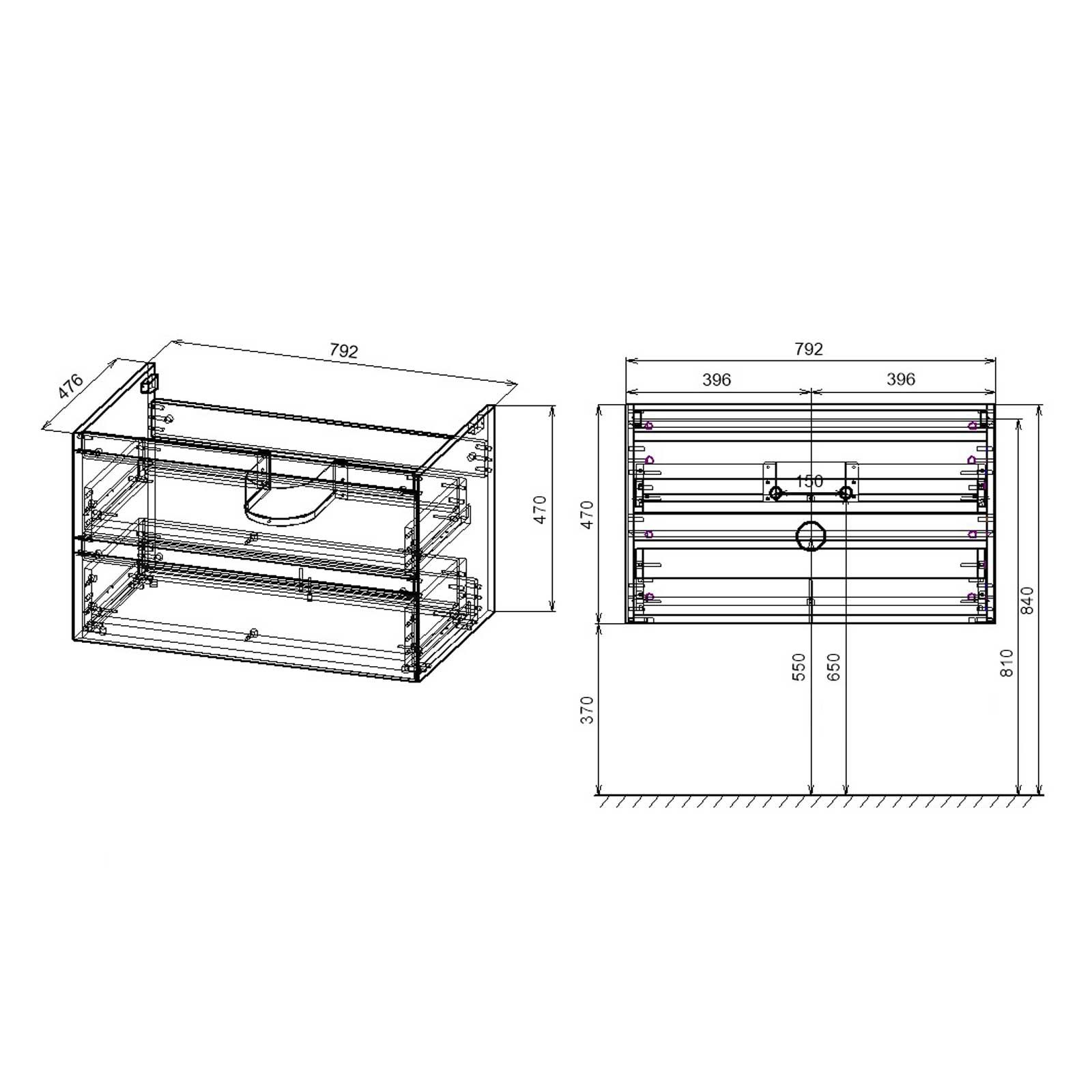 792x476x470 База под раковину в отделке Серый камень
