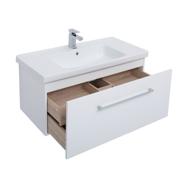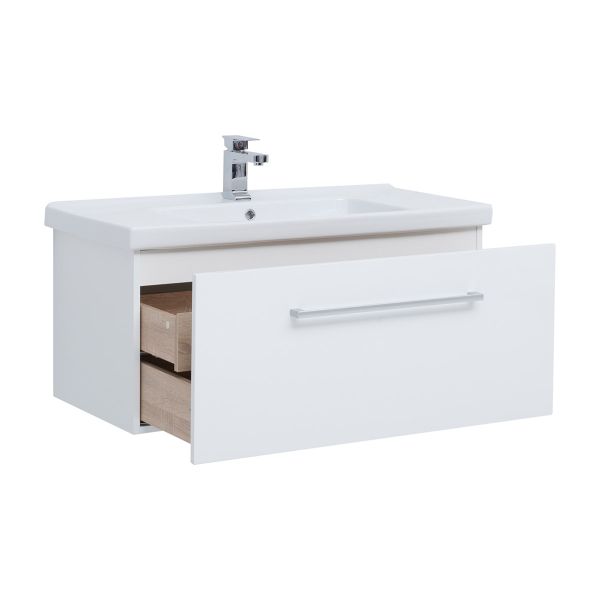 Подвесная современная коллекция в 3-х размерах с 1-м выдвижным ящиком, с доводчиками Hettich Возможна комплектация зеркалом, зеркальным шкафом, пеналом, полупеналом.