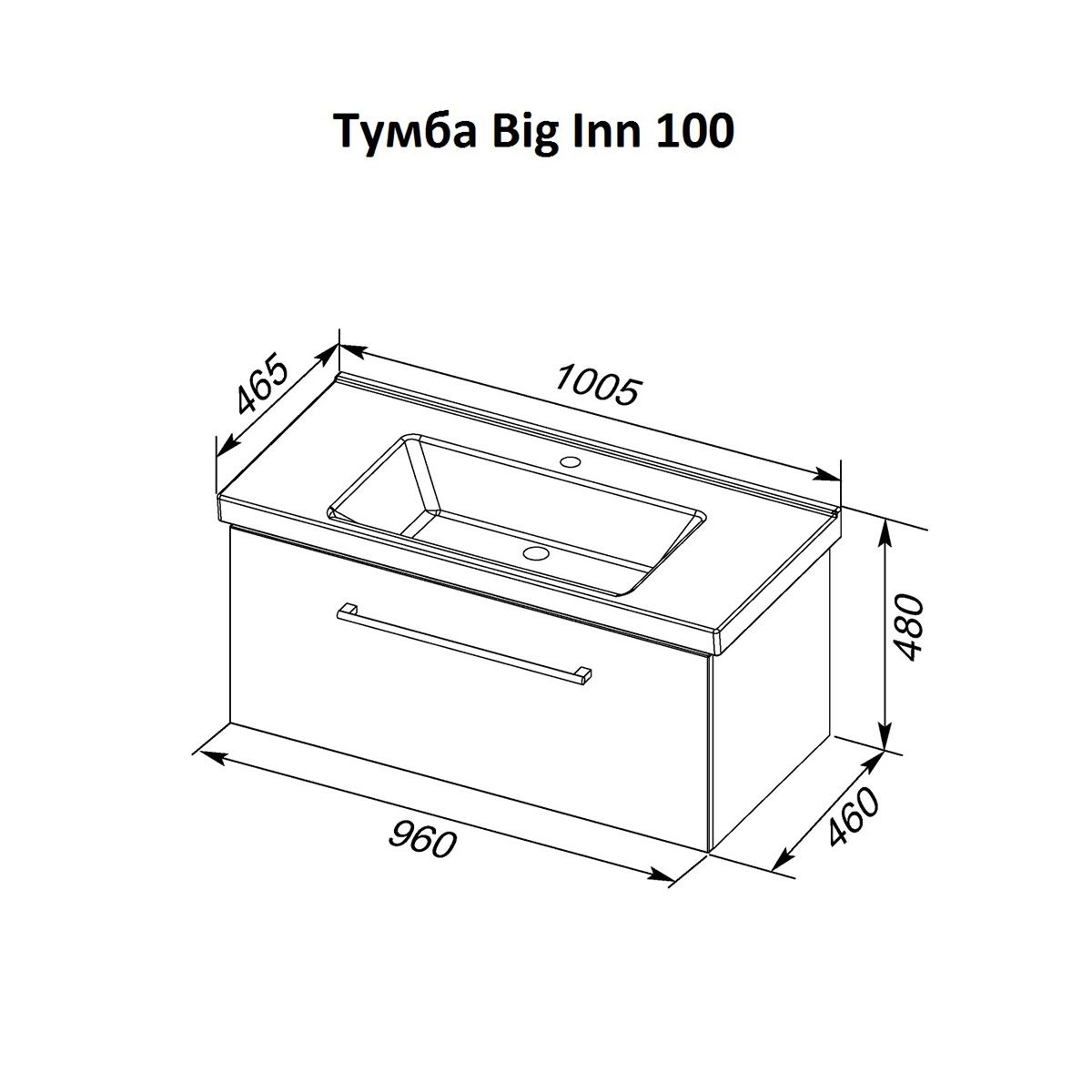 Тумба подвесная Dreja.Rus BIG INN 100 под умывальник Гармония 100, белый глянец
