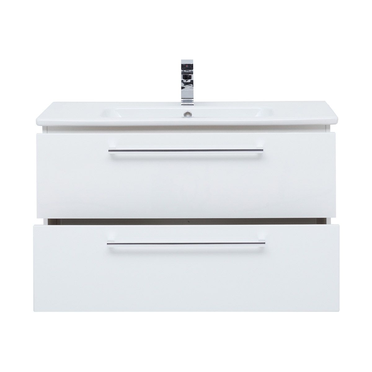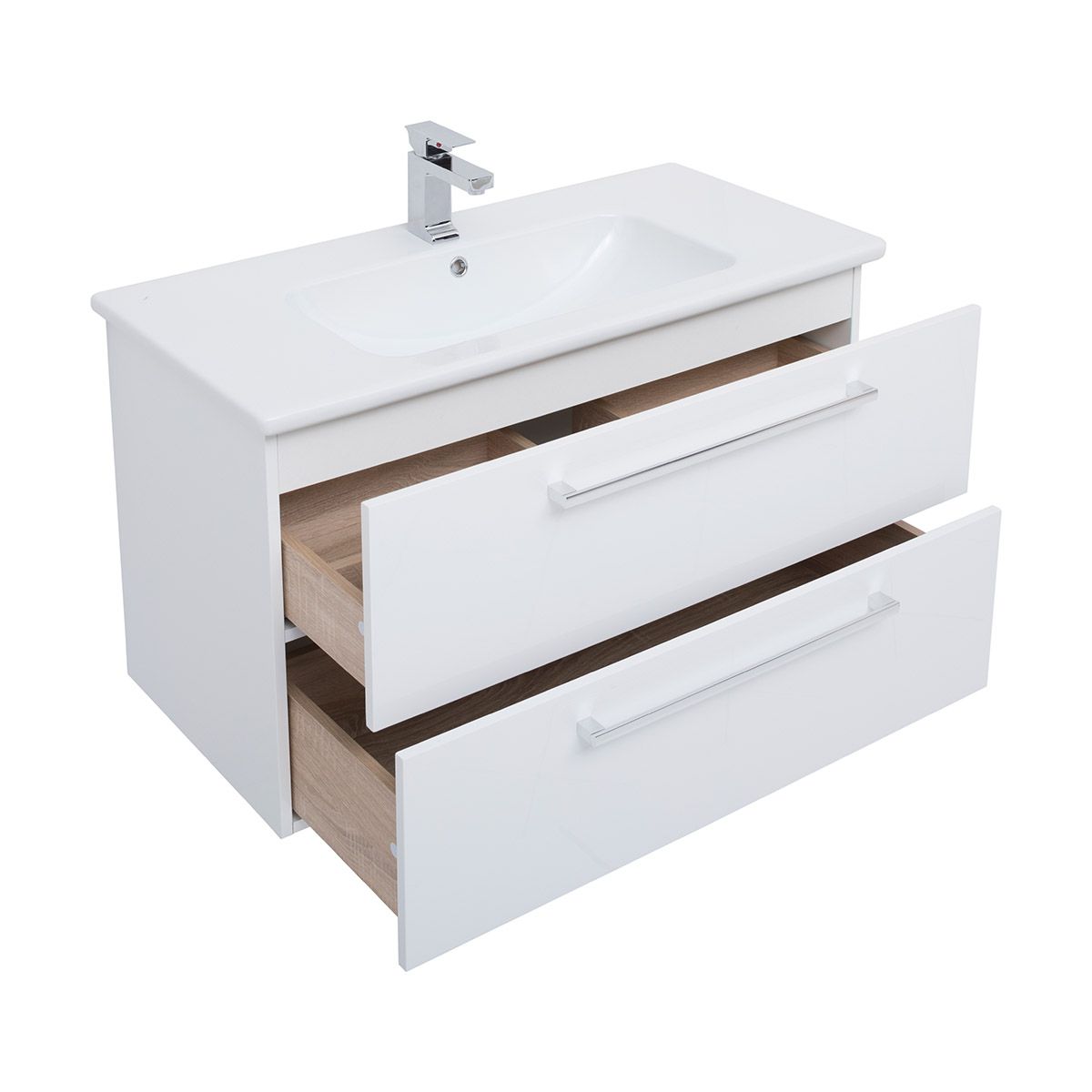 Подвесная современная коллекция в 3-х размерах с 2-мя выдвижными ящиками с доводчиками Hettich Возможна комплектация зеркалом, зеркальным шкафом, пеналом, полупеналом.
