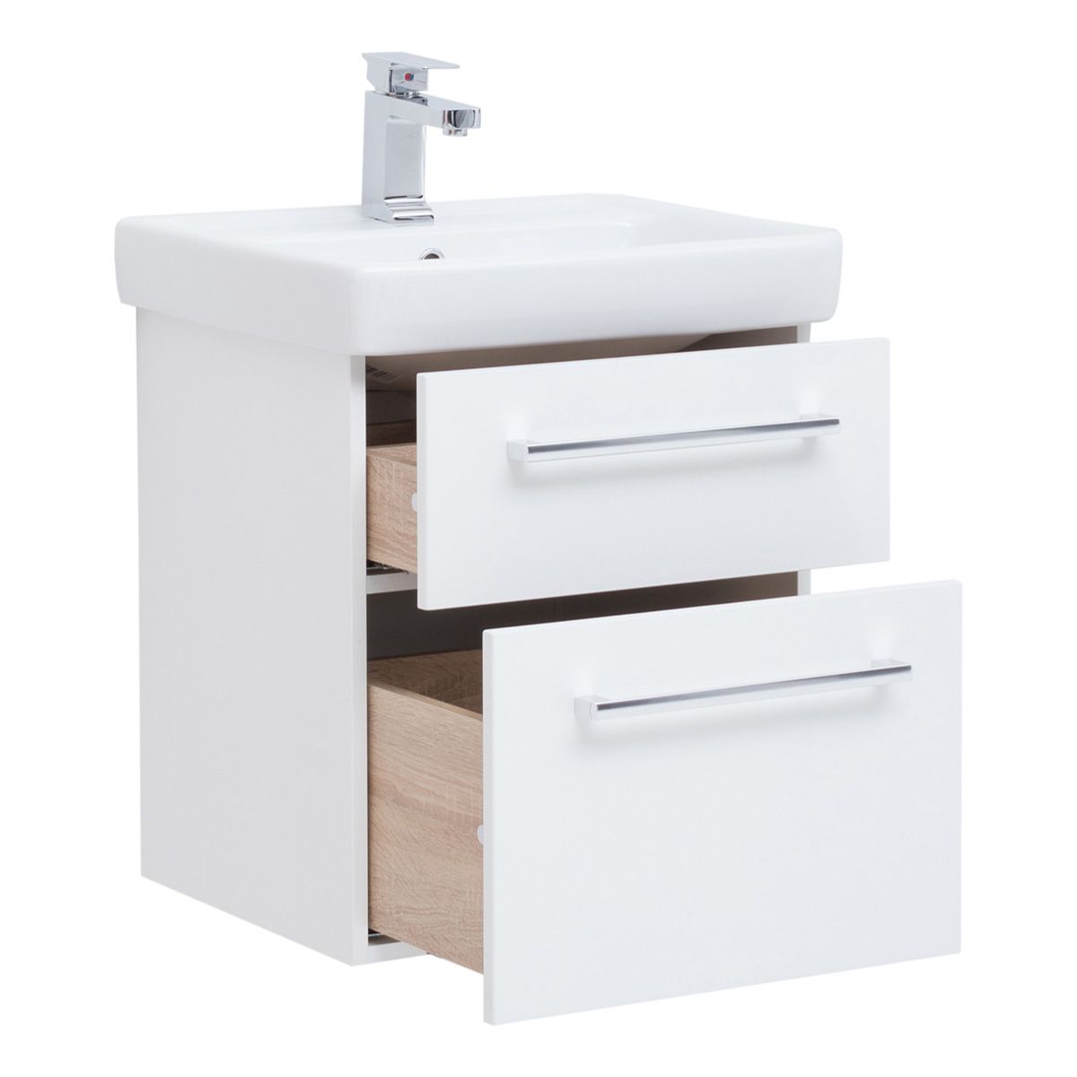 Подвесная современная коллекция в 4-х размерах с 2-мя выдвижными ящиками с доводчиками Hettich Возможна комплектация зеркалом, зеркальным шкафом, пеналом, полупеналом.