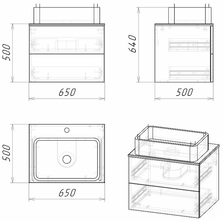 Тумба подвесная под раковину Grossman Альба 106502 65см веллингтон/бриз купить