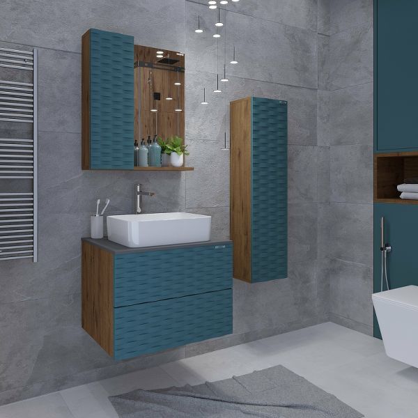 Подвесная тумба Альба - функциональное и практичное исполнение. Матовая фактура в цвете Бриз с 3D рисунком безупречно сочетается с фактурой под дерево и позволяет тумбе органично вписаться в интерьер ванной комнаты.Цвет: веллингтон, бриз.
