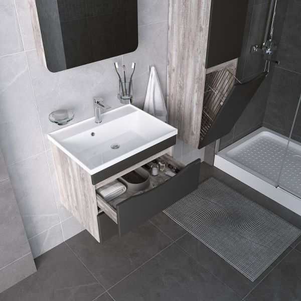 Тумба подвесная под раковину Grossman Талис 107010 70см бетон пайн/серый
