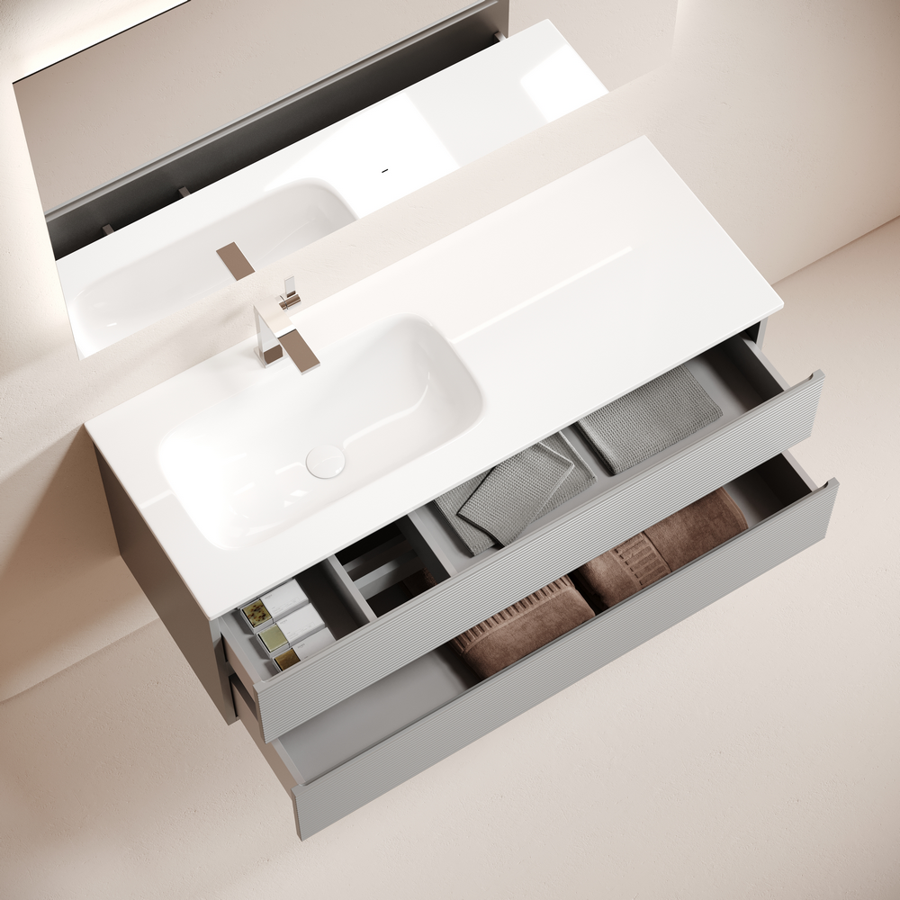 • Тумба с двумя выдвижными ящиками и с доводчиками скрытого монтажа