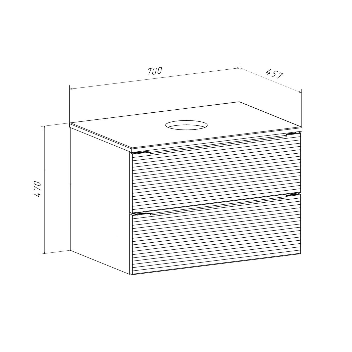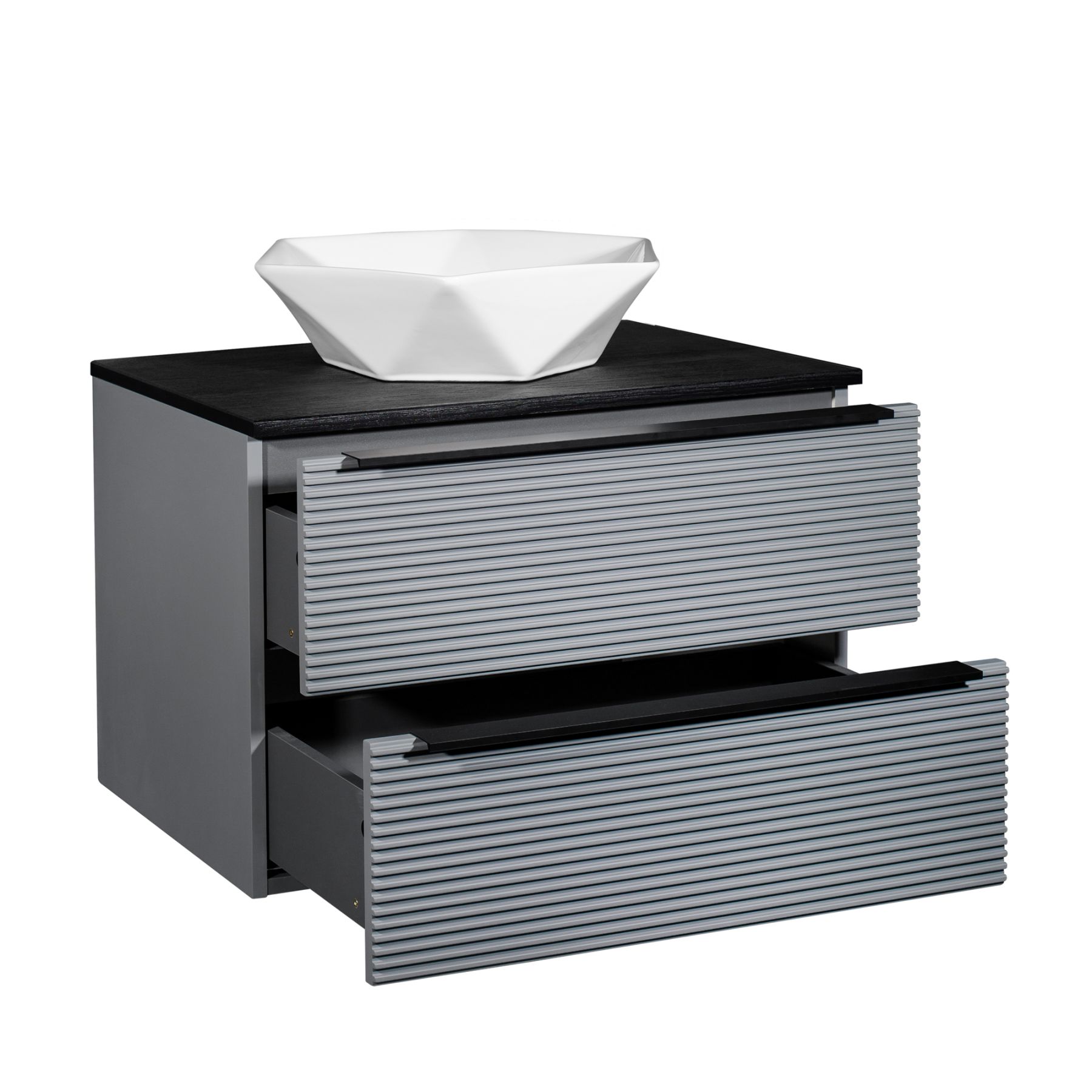 Тумба RUNO Орлеан 70 серый чёрный подвесная под накладной умывальник (00-00002021)