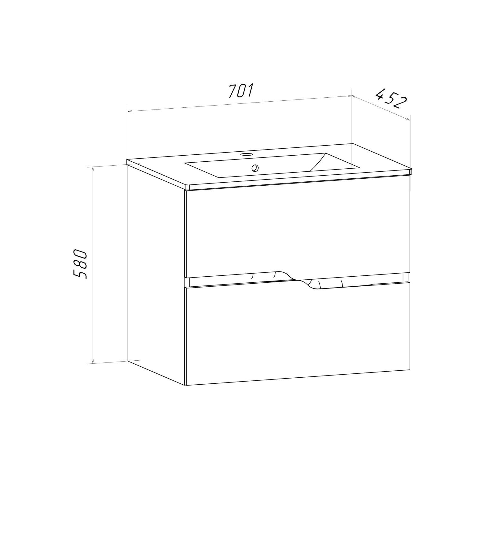 Тумба Runo Палермо 70 подвесная под умывальник Teffy 70 (00-00004083)