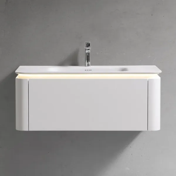 Коллекция U925 представлена в четырех популярных размерах — 800, 900, 1000 и 1200 миллиметров, что позволяет подобрать идеальный вариант для любой ванной комнаты. Раковина из кориана с матовой белой столешницей имеет стильный современный дизайн и отличные эксплуатационные характеристики. Она устойчива к воздействию влаги и механических нагрузок, сохраняя свой первоначальный вид в течение многих лет.
