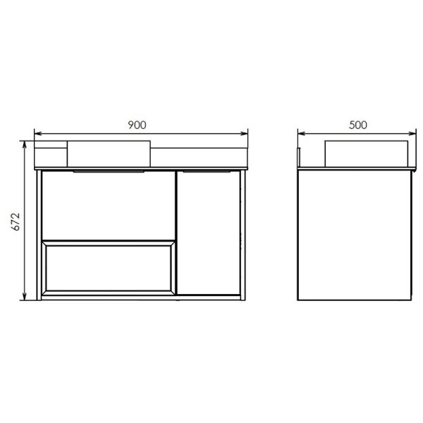 Габариты тумбы с раковиной (ШхВхД): 900х672х500 м.