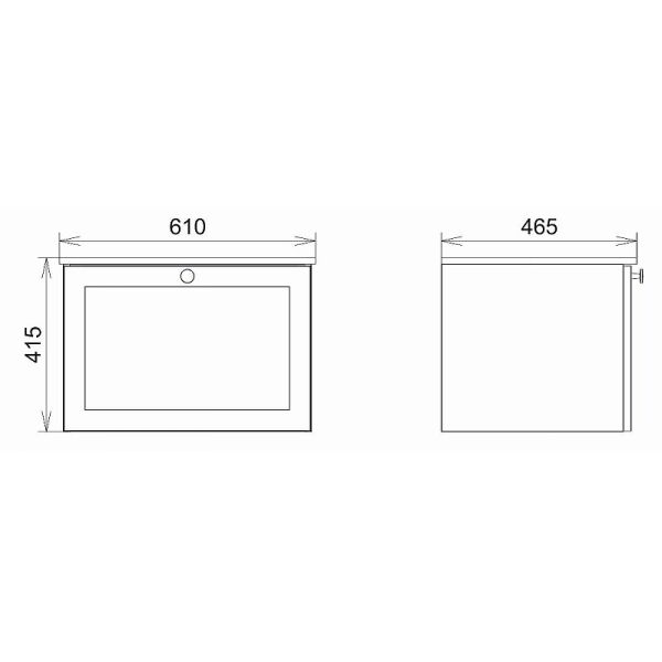 Габариты тумбы с раковиной (ШхВхД): 610х415х465 мм.