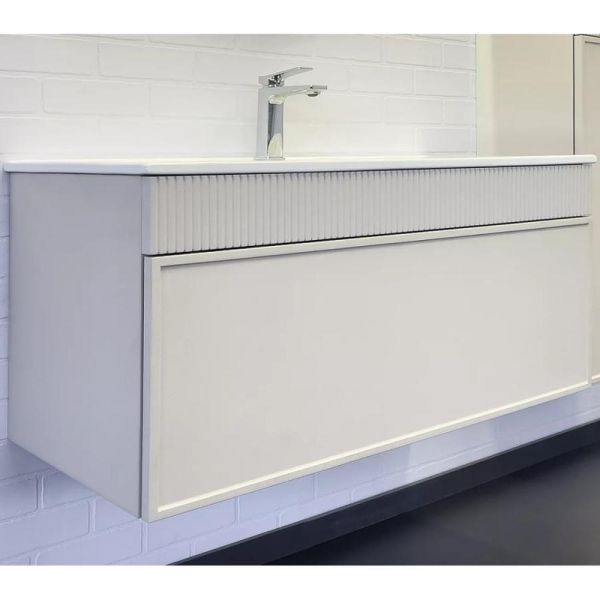 Тумба с раковиной Comforty Мадрид 00-00017880 101 см Серый шелкПодвесная тумба с одним большим выкатным ящиком оборудованным направляющими с системой плавного закрывания. Корпус тумбы изготовлены из влагостойкого ЛДСП. Фасад тумбы из МДФ фрезерован кантом по периметру. Подпорная царга фрезерована вертикальным узором. Корпус и фасад тумбы затянуты в матовую пленку цвета серый шёлк. Тумба подготовлена для подключения водоснабжения снизу и сзади.Характеристики:Тумба:Цвет: серый шелк.