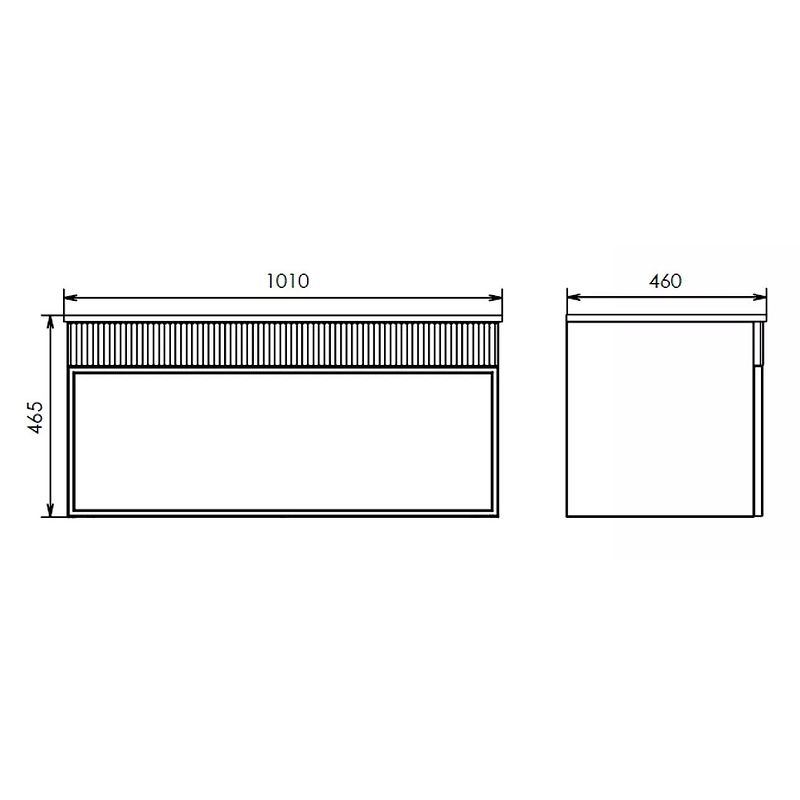Габариты тумбы с раковиной (ШхВхД): 1010х465х460 мм.
