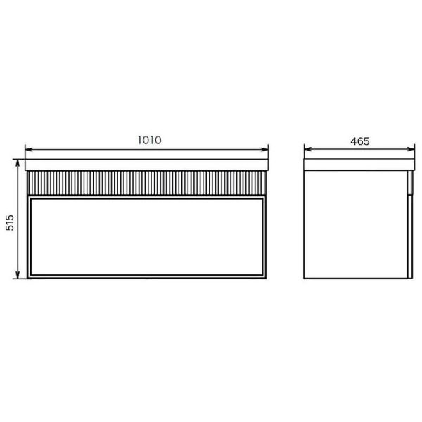 Габариты тумбы с раковиной (ШхВхД): 1010х515х460 мм.