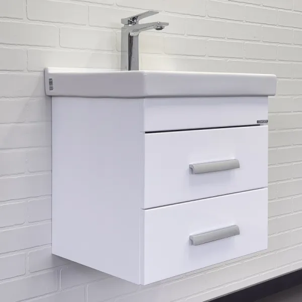 Тумба с раковиной Comforty Никосия 00-00018022 50 см белыйПодвесная тумба с двумя выдвижными ящиками, оснащенным системой плавного закрывания. Тумба подготовлена для подключения водоснабжения снизу. В комплекте: керамическая раковина Fest 50