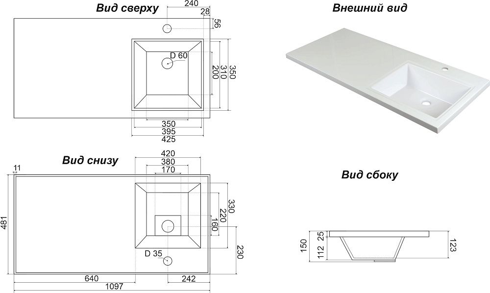 - Возможна установка донного клапана, его нужно приобрести отдельно