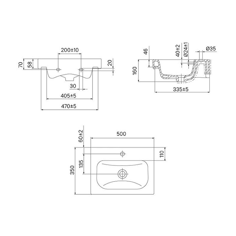 Отверстие под смеситель: 1.