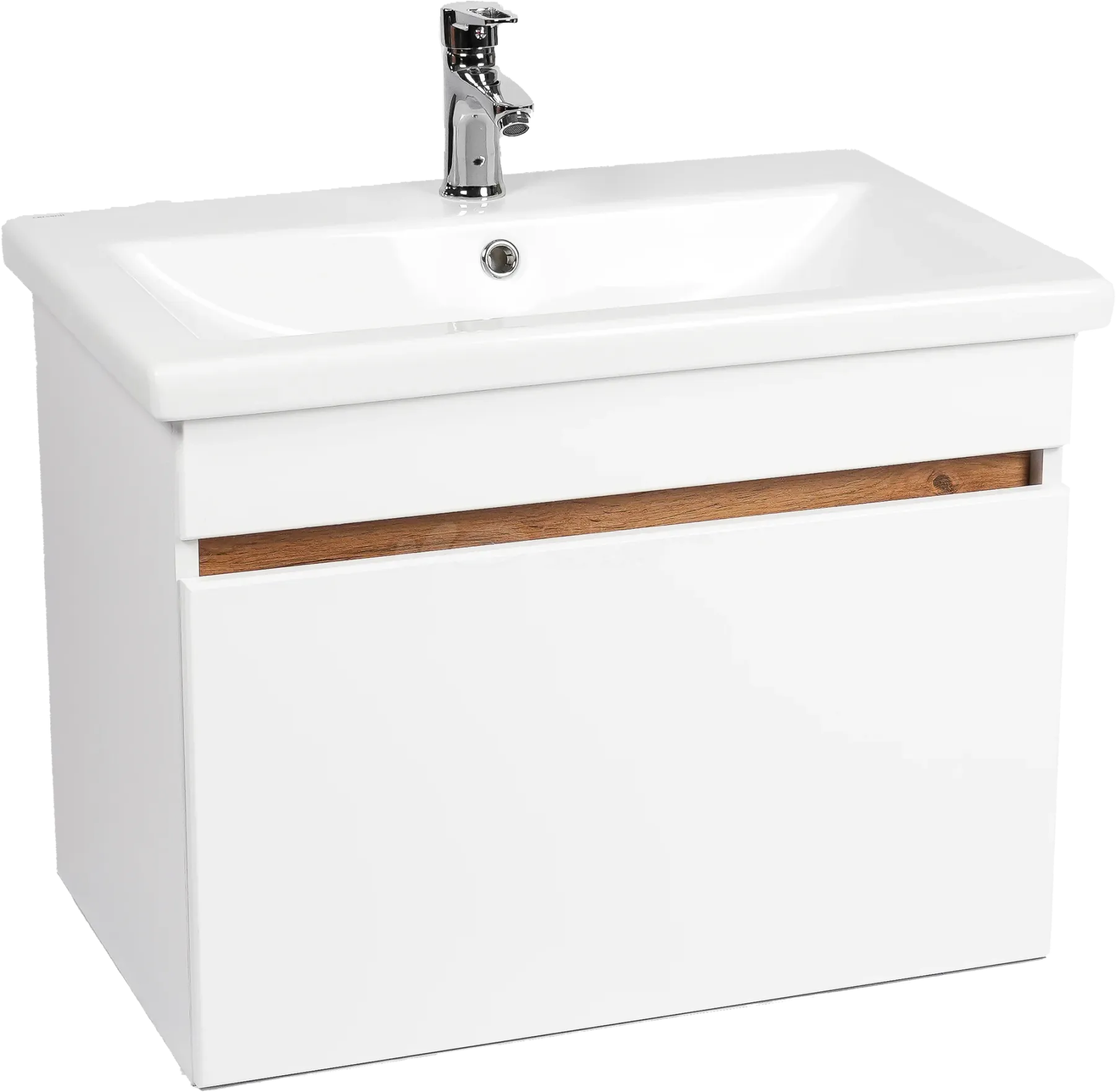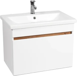 Тумба с раковиной VIANT Мальта 70 подвесная, белая, дуб вотан, 1 ящик
