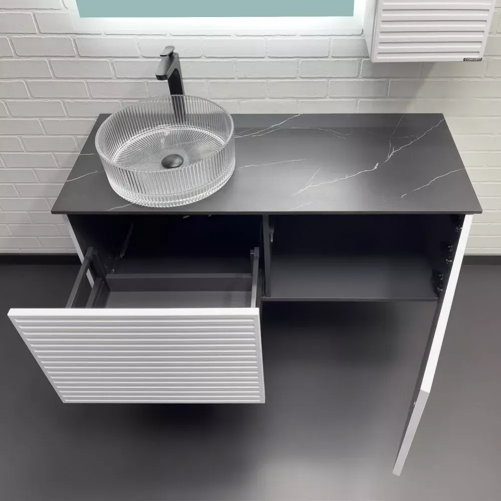 Тумба-умывальник Comforty Геленджик 120 белый матовый со столешницей мрамор Калакатта Блэк c раковиной Comforty CF21001 купить