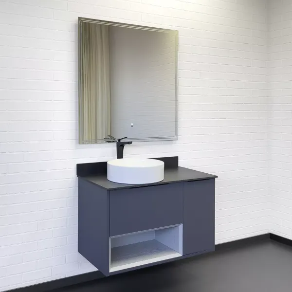 Тумба-умывальник Comforty Джанкой 90 антрацит с черной столешницей и раковиной 9111