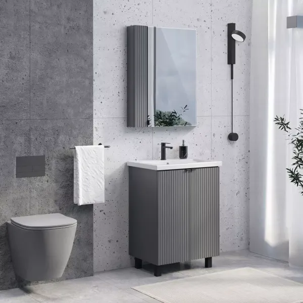 Тумба-умывальник Comforty Лима-60Н антрацит с раковиной Como 60