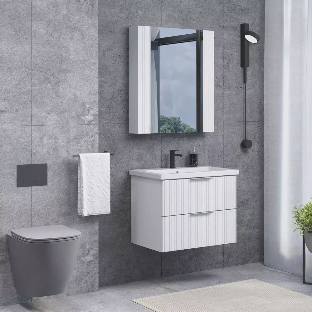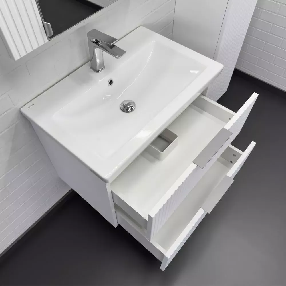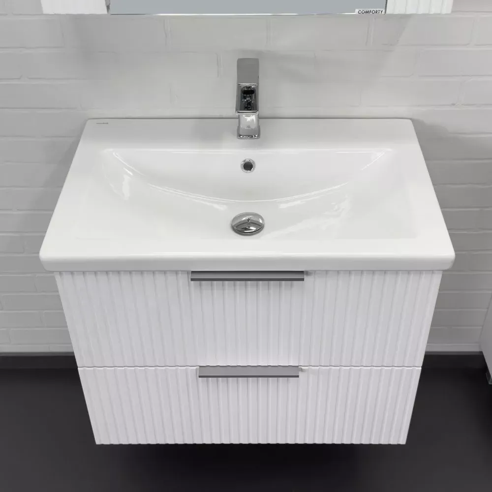 Тумба-умывальник Comforty подвесная Лима-70П2 белая матовая с раковиной Como 70