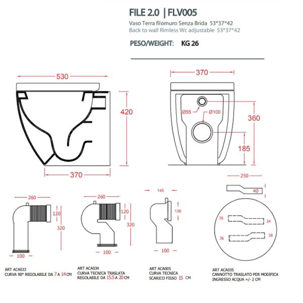 • Прилегание унитаза к стене: