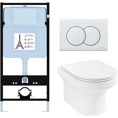 Унитаз c инсталляцией Jacob Delafon Elite E21743RU-00 сиденье тонкое микролифт, клавиша белый глянец купить