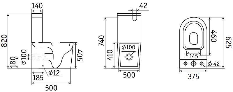 Размеры (ШхВхД): 375x820x625 мм.