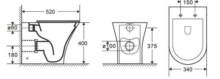 • Прилегание унитаза к стене: