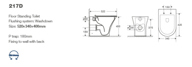 • Прилегание унитаза к стене: